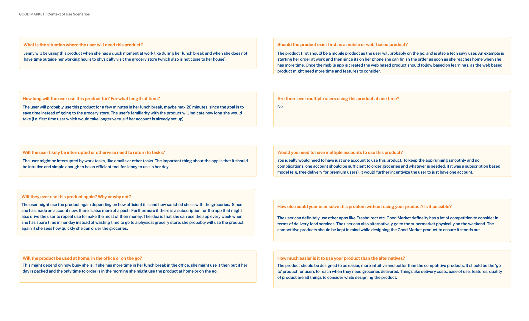 Context of Use Scenarios for Good Market