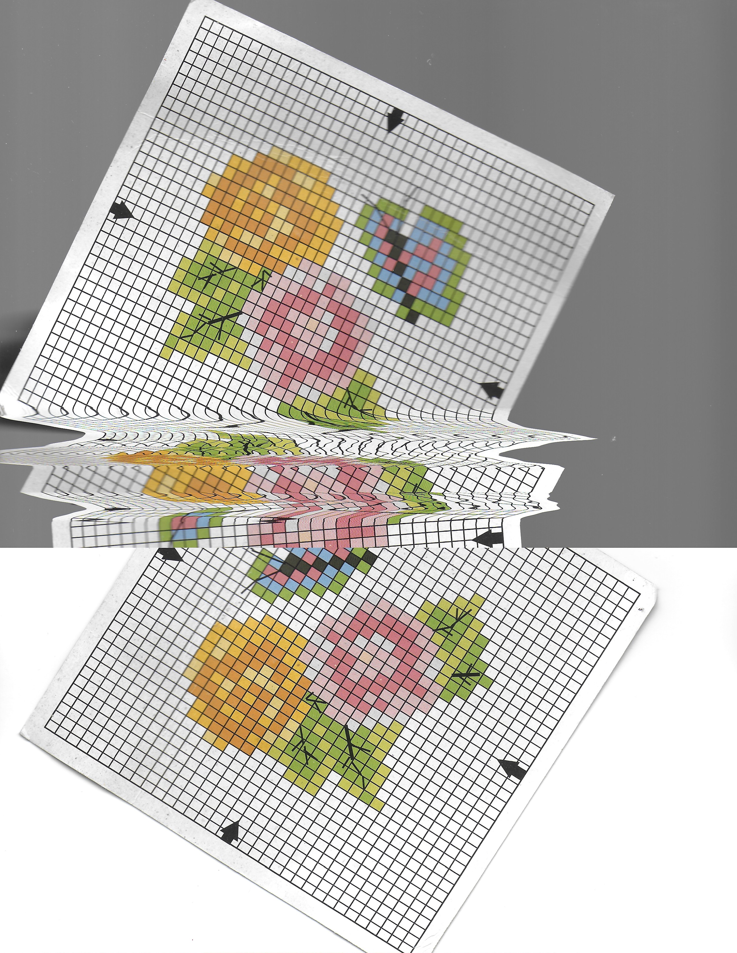 A series of scans of grided embroidery design paper